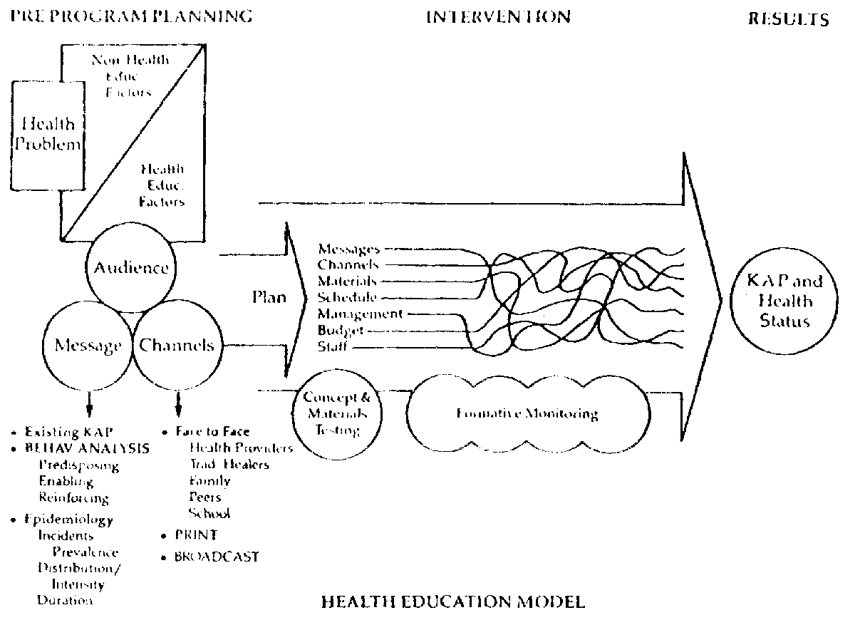 Skill in planning and evaluating health education is important for the success of any project for controlling diarrheal diseases. Ongoing monitoring and evaluation provide a means to improve activities during and after a project and can increase community involvement in a project in Session 13 participants analyzed local health practices that affect diarrhea. In Session 14 they explored ways to work with the community to change harmful practices and encourage helpful ones. In this session Volunteers work with their Counterparts to plan a health education project on ORT, or a related aspect of CDD, that applies the ideas developed in these two earlier sessions. They identify a specific health problem related to diarrhea, set objectives, assess resources and constraints and discuss how to evaluate the project
