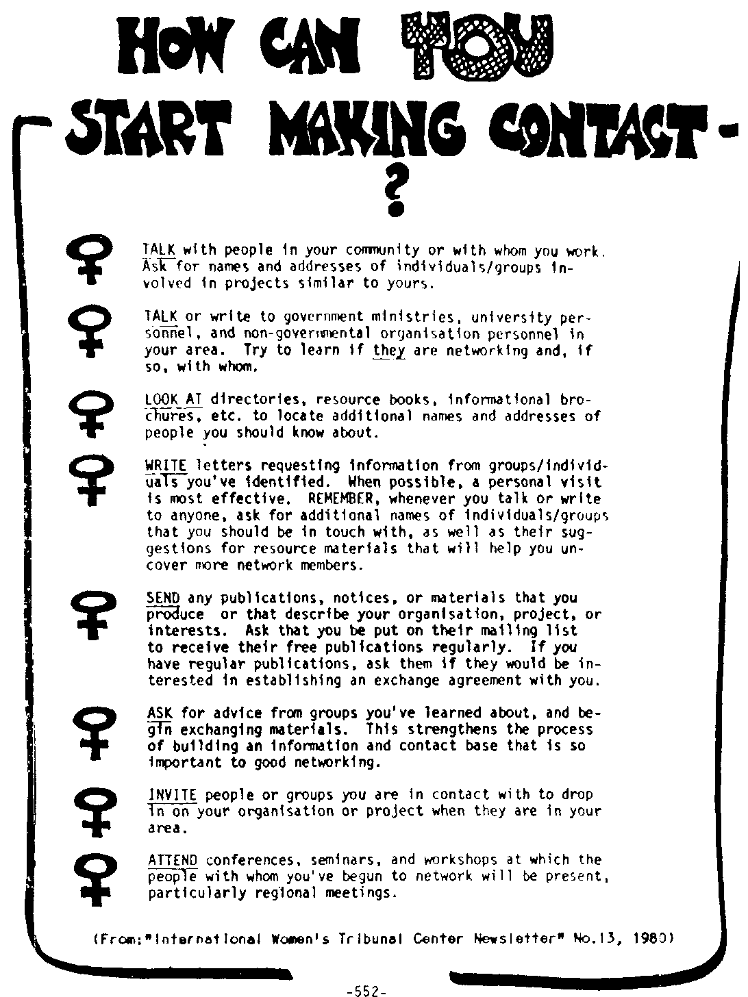 · national, bringing women together based on concerns unique to conditions in that country, such as legal or economic problems;
