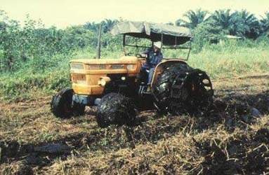 In many rice growing areas, the past two or three decades have seen a dramatic displacement of draught animals by tractors, as illustrated in this slide from Malaysia. Such mechanization makes it practical and economic to put marginal lands under cultivation. The ensuing ecological changes and the creation of monocultures (habitat simplification) can have far-reaching consequences for the health status of local communities. Farm mechanization will also change peoples lifestyles, possibly increasing the mobility of migrant and seasonal labour. In relation to rice cultivation, mechanization is likely to be associated with increased areas under flooding and more vector breeding opportunities. The introduction of upland or dry rice varieties will, on the other hand, reduce such risks. The recent trend of broadcasting rather than transplanting rice (in countries were manual labour is becoming too expensive) is also likely to have a beneficial effect with respect to vector-borne disease risks.