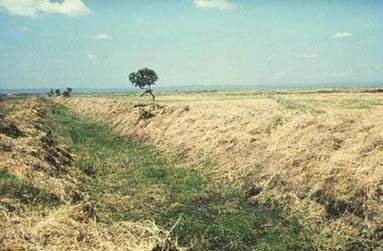 Colonial desert rodents create ideal habitats for sandflies in their relatively cool, moist burrows, across the entire Old World arid belt, from the northern edge of the Sahara to Mongolia and northern India. The animals also serve as a reservoir host to the Leishmania parasite. Agricultural development affects the sandflies in two main ways. Deep ploughing, shown in this slide, and other land disturbances eliminate Rhombomys and Psammomys species, two main reservoirs of cutaneous leishmaniasis, but often encourage Meriones species to increase in numbers. A second effect comes with changes in the water tables: depending on the location and vector species involved, either raising or lowering water tables may favour the breeding of sandflies. In the environmental impact assessment of the Flood Action Plan in Bangladesh, the possibility of increased risks of leishmaniasis transmission were distinctly identified in relation to a lower water table.