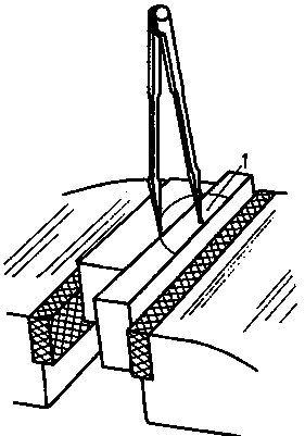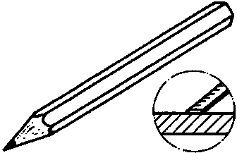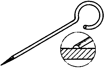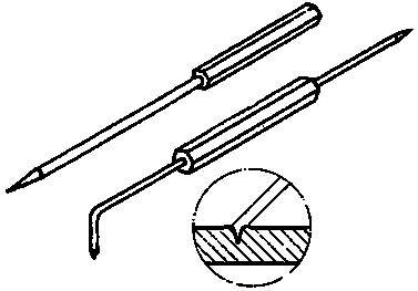 Scribing tool of brass wire with filed point. It is used for scribing on finished surfaces only and applied a thin yellow line - no notching effect I
