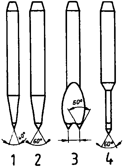 - Angle of taper 60° with very slender point, for prick-punching of holes to be drilled through stencils. |