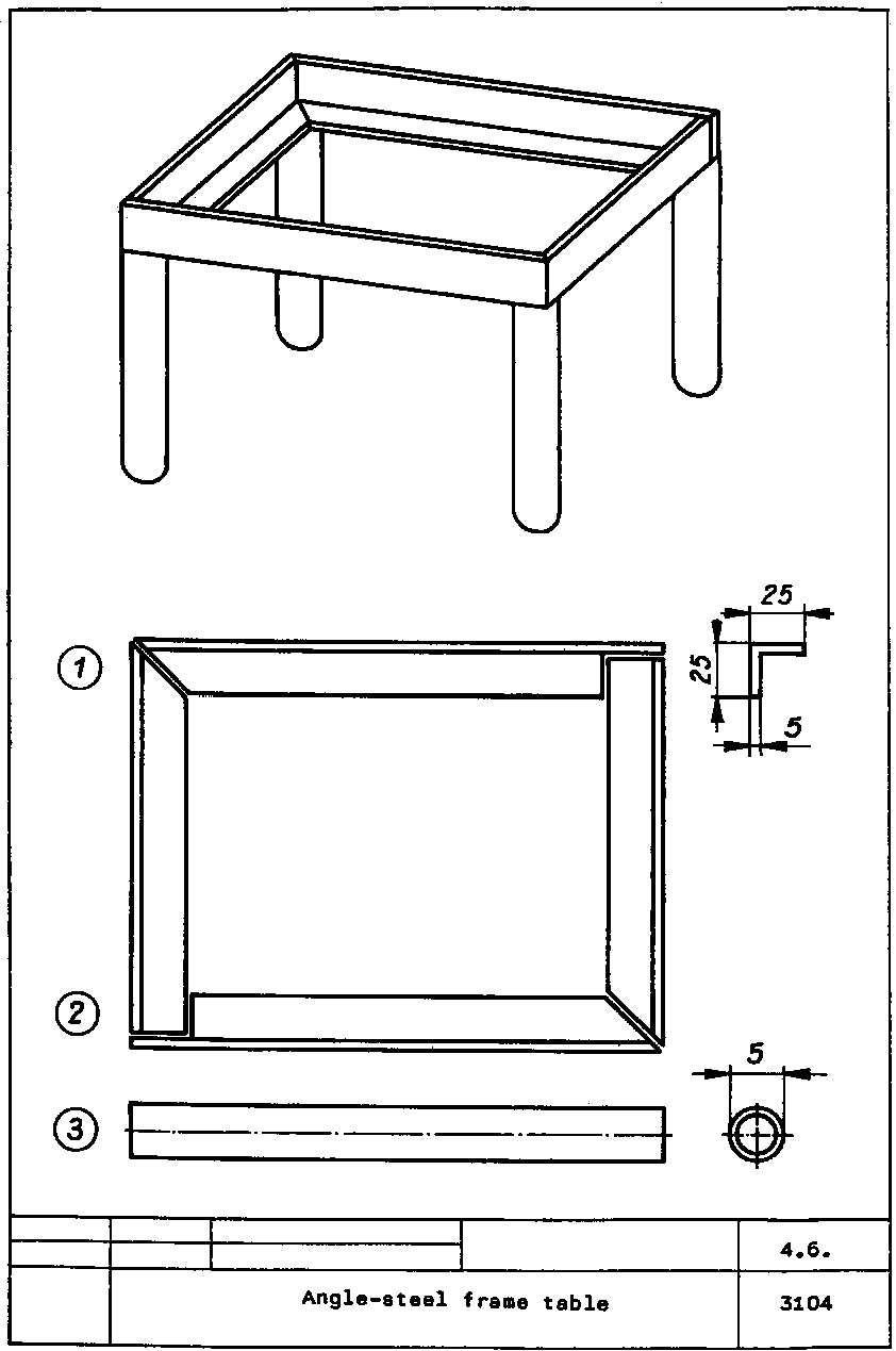 - Angles of 25 x 25 x 5 thick, length depending on table size.- Steel tube of 25 mm diameter, length depending on table size (or to suit training example 4.2.).