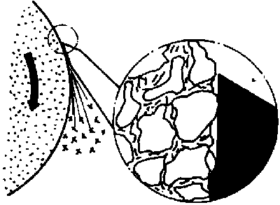 After the abrasive grains have become dull they tear loose from the structure of the wheel making room for the next following sharp abrasive grains that continue the cutting operation.