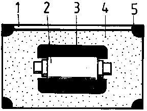 casehardening - 1 fireproof box with cover, 2 workpiece, 3 carbon-containing