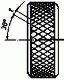 Spiral knurlings are also produced by two wheels having tooth-type grooves in the form of a 30° right-hand or left-hand spiral (2 wheels with oppositely inclined teeth).