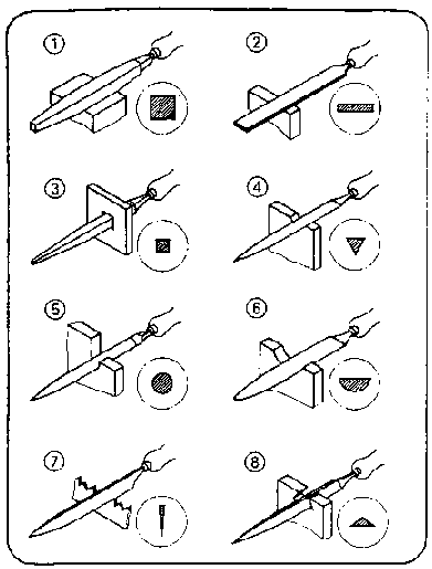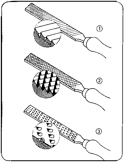 The trainees have not only to know the types of files but also how to use them. In this context the instructor has to mention that the use of files depends on their sizes and kinds of cut (single-cut, double-cut, rasp-cut).