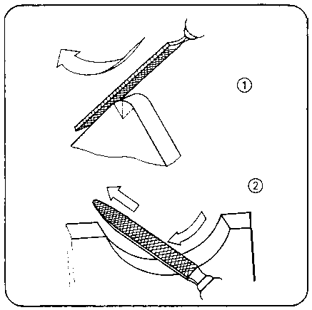 - Files with crack-free file handles must be used only.- New file handles are to be drilled and enlarged in relation to the tang of the file and then fixed by light blows with the hammer.