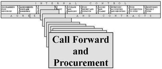 The call forward is a request for delivery of a specified amount of food to a particular country program for use at specified periods of time. While distribution of all food may span more than a year and a half, the call forward process arranges for export of food from donor countries or sources on a regular basis throughout the life of the project. To prepare a call forward country offices must know existing balances of food, expected arrival times of shipments already requested and how much food they plan to distribute. Once the call forward is approved, the donor procures the food and arranges shipments with CARE.