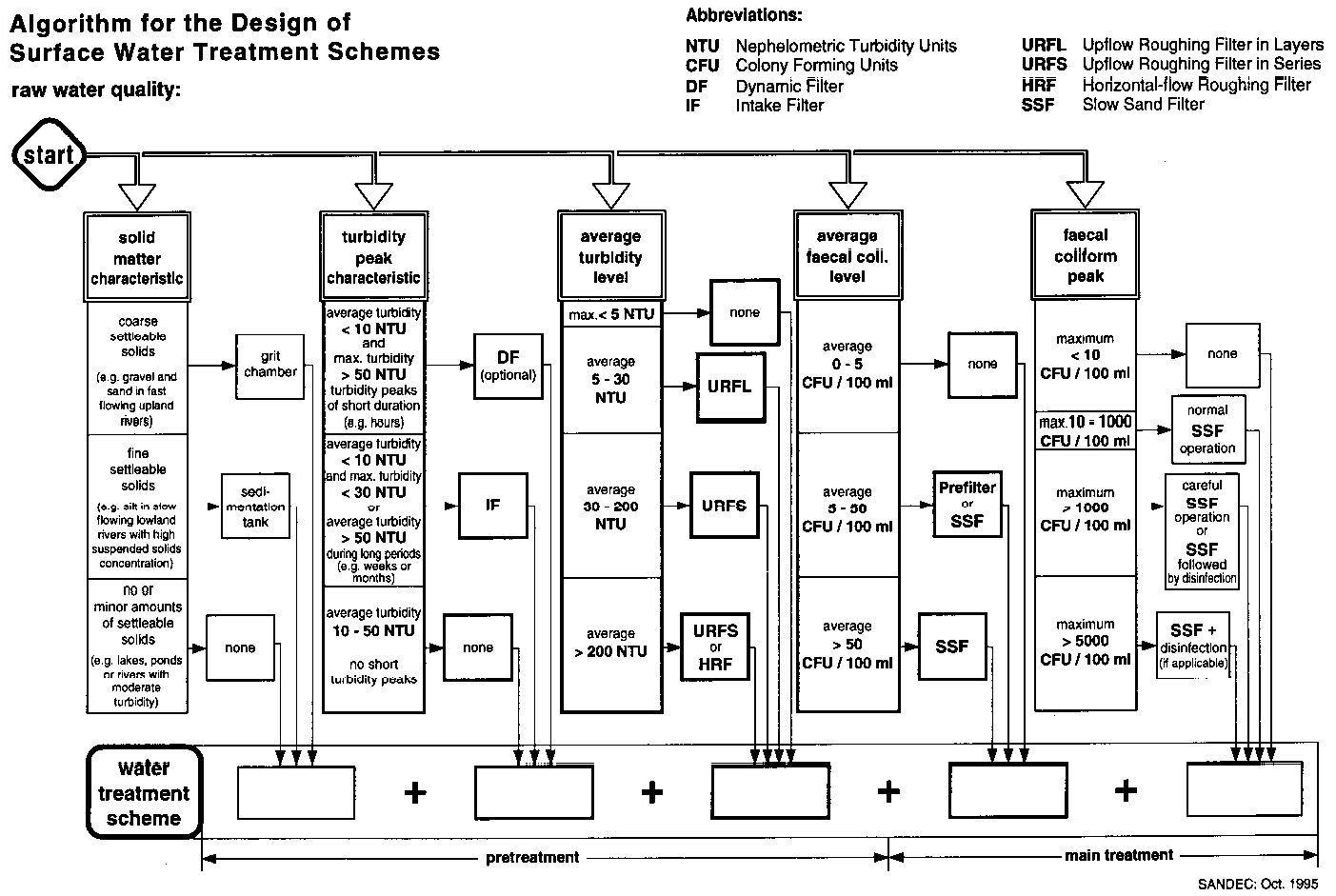 - reduce turbidity and suspended solids concentration by DC (mg/l) to a level required for adequate slow sand filter operation