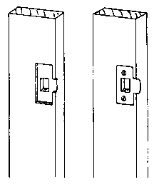 - Install striker plate on jamb by first closing the door and marking the position of the latch in the jamb. Rebate the housing for the striker plate. Also drill and chisel the hole to receive the latch bolt and attach striker plate. Door stops can now be fitted.