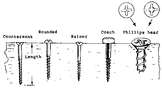 a) Coach screw: - Extra large wood screw with bolt type head that is tightened with a spanner.