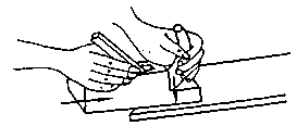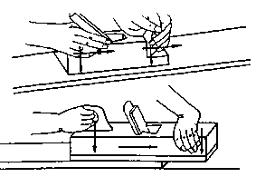 When planing narrow faces of cross-cut wood (sectional area) the plane must be moved only up to the centre of the face. The thickness of the shavings to be cut is dependent on the plane iron's excess length over the face.