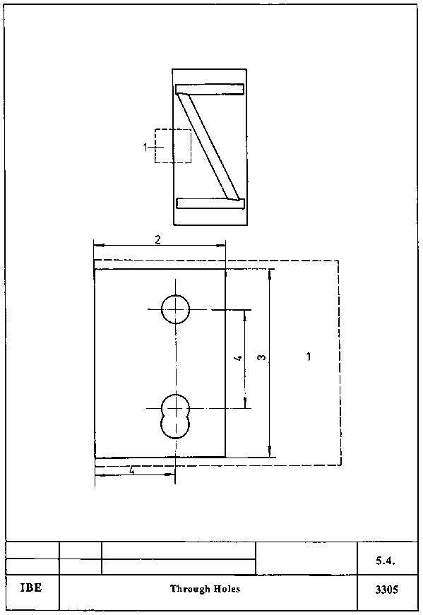 Through holes in wooden materials are required wherever fittings are to be mounted. In this example, the board door from instruction example 5.3. shall be provided with a screw-on lock as lock fitting.