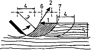 (2) cutting force at small cutting depth1 feed force, 2 cutting force, 3 chipped edges