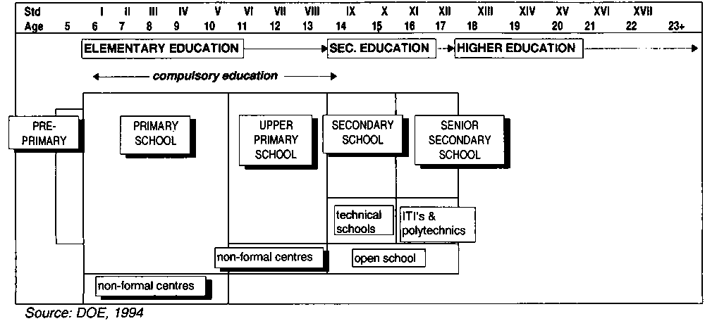 1 The period of compulsory education from standard I to standard VIII is known as elementary education as illustrated in Figure 1.