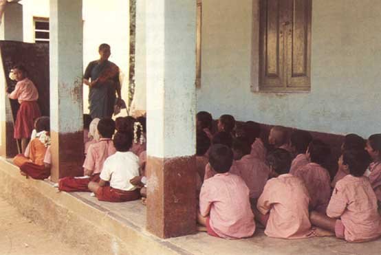 India has declared that it will provide Education for All by the year 2000. This in itself is a huge undertaking, and will involve expansion of early childhood care and development, universalisation of elementary education, reduction in literacy, and provision of opportunities to maintain, use and upgrade education. Improving the content and process of education should be a high priority, 'to better relate to the environment, people's culture and with their living and working conditions, thereby enhancing their ability to learn and cope with the problems of livelihood and environment'. A recent report by the National Advisory Committee (1993), however, looks at the 'burden of learning' in the education system and the main problems associated with it, namely the emphasis on an education to gain elite qualifications, rather than a competence for doing useful things in life. This report states that 'both the teacher and the child have lost the sense of joy in being involved in an educational process. Teaching and learning have both become a chore for a great number of teachers and children,...the majority of our school-going children are made to view learning at school as a boring, even unpleasant and bitter experience'. Competency levels in reading, writing and numeracy of primary school children are estimated to be very low; at most only 30% of children have adequate competencies in these areas. Undue importance has been given to 'memory', instead of developing 'thinking' capabilities. To be effective, rural primary schools should equip the students to face the realities of the environment in which they live, and this is not being achieved in the current education system.