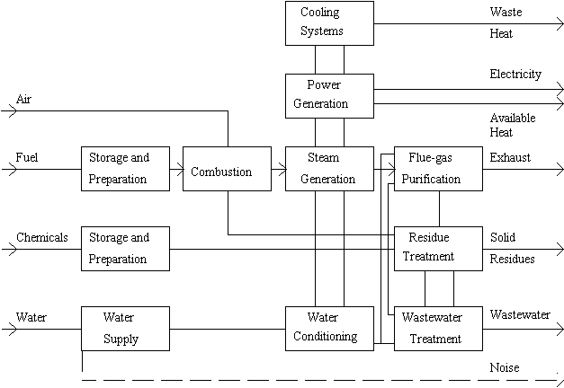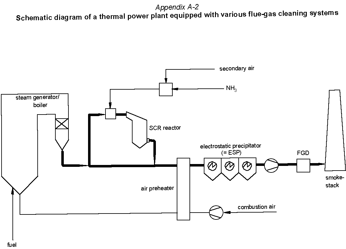 Appendix A-2 - Schematic diagram of a thermal power plant equipped with various flue-gas cleaning systems
