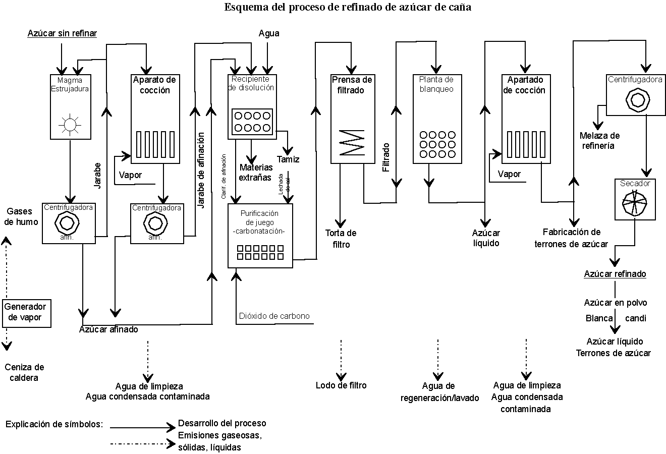 Esquema del proceos de refinado de azúcar de caña