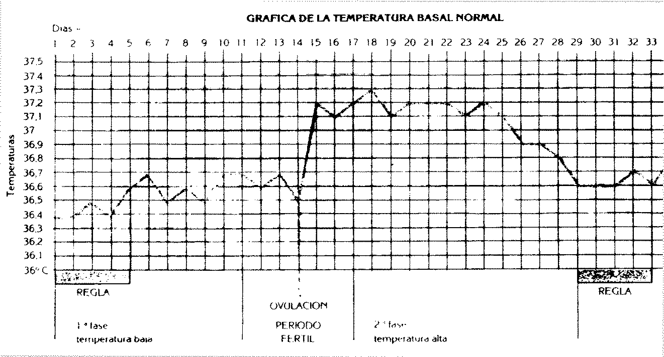 Método de la temperatura: La mujer en la mañana, a la misma hora, debe tomarse la temperatura vía oral por 5 minutos, la cual debe anotar en una gráfica especial. En el momento de la ovulación, por acción de la progesterona sobre el centro de la temperatura corporal esta eleva de 0,3 a 0,5 grados centígrados por encima de lo habitual; 5 días después de la ovulación puede tener relaciones sexuales hasta la próxima menstruación.