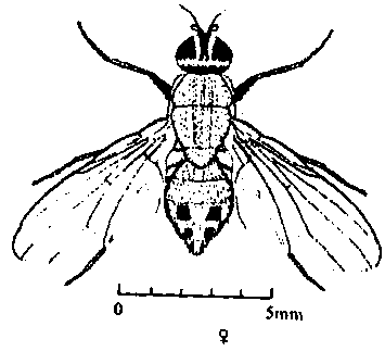 La Mosca del Sorgo (Atherigona soccata): Una plaga mayor en Africa y Asta. Los adultos se parecen a las moscas comunes y ponen los huevos sobre las hojas de las plantas Jóvenes. Las larvas bajan a la vaina foliar y entonces perforan el tallo, con frecuencia matando el punto de crecimiento. La hoja más jóven entonces se pone oscura y se marchita--esta condición se llama corazón muerto. Algunas variedades del sorgo muestran resistencia a la mosca del sorgo. Los insecticidas aplicados a la vaina foliar no son tan efectivos como las aplicaciones terrestres de pro-emergencia de insecticidas sistemáticos.
