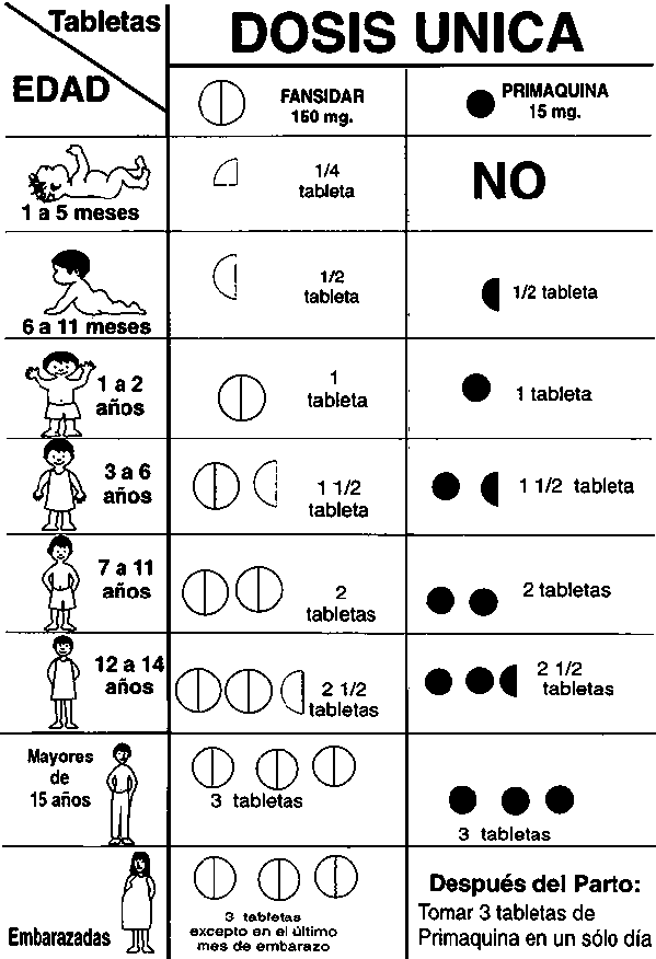 Dosis de Fansidar y Primaquina - MALARIA FALCÍPARUM - Esquema Oficial de Tratamiento a nivel nacional - AFICHE PARA PEGAR EN NUESTROS ESTABLECIMIENTOS