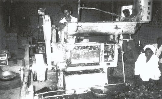 One traditional method for extracting oil involves the use of a 'ghani'. Ghanis originated in India, but their use is now more widespread.