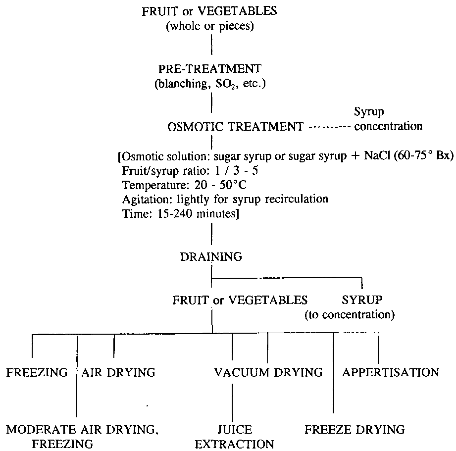 Furthermore, through the selective enrichment in soluble solids high quality fruit and vegetables are obtained with functional properties "compatible" with different food systems. These effects are obtained with a reduced energy input over traditional drying process. The main energy-consuming step is the reconstitution of the diluted osmotic solution that could be obtained by concentration or by addition of sugar.