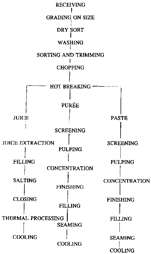 Flow-sheet of processing operations for tomato products