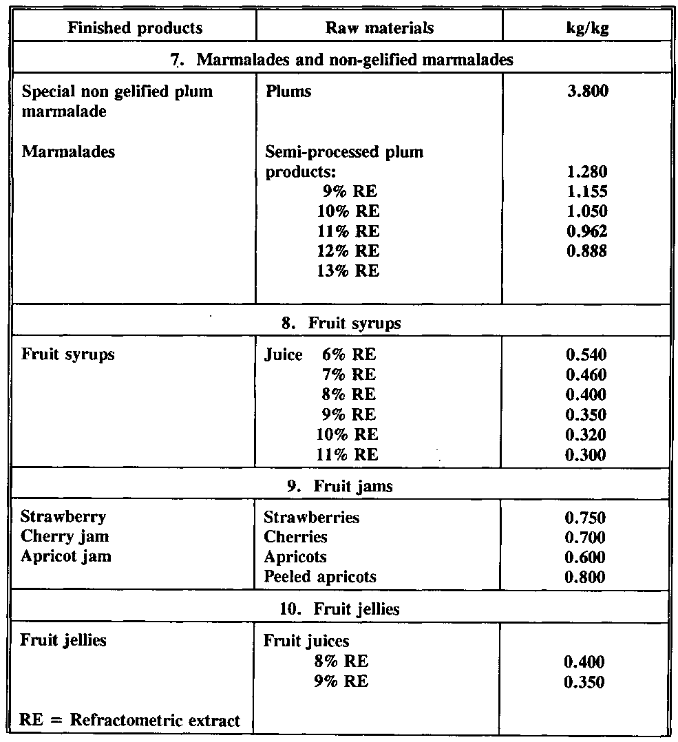 Temperate and tropical fruit jellies, marmalades, syrups, jams and various types of sugar preserves can also be manufactured in this plant as far as preparation and juice extraction equipment are available and that kettle can be used for cooking the preserves. The preparation equipment should be arranged in a "modular" way in order to enable multiple fruit processing steps.