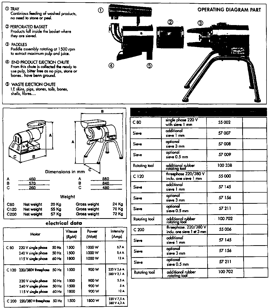 (20) Machine for potato boiling: in water vapour, at 100° C, for 20 min.