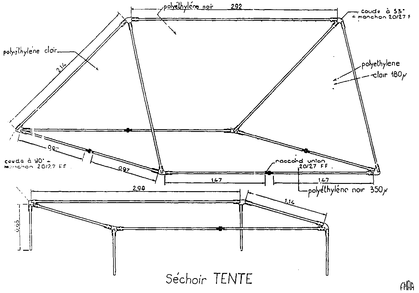 Il est constitué par les mêmes matériaux utilisés dans le séchoir tente mais diffère par sa forme et sa partie préchauffage ou capteur.