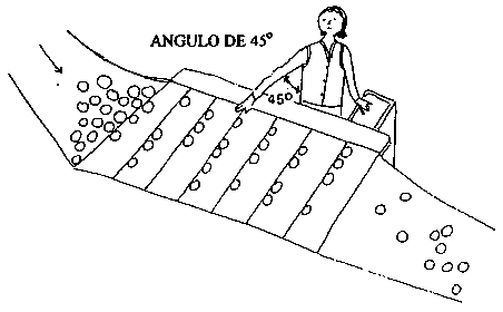 Si el producto es de forma redondeada se puede separar usando unos anillos clasificadores por tamaño. Los anillos se pueden construír de madera o bien comprarlos ya hechos en una amplia gama de tamaños.
