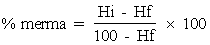 Si para maíz la Hi es de 17 %, la merma de la tabla oficial es de 4,05 %, si bien la base de comercialización es de 14,5 %, para el cálculo de la merma se toma una base menor en un 1 % (Hf = 13,5%).