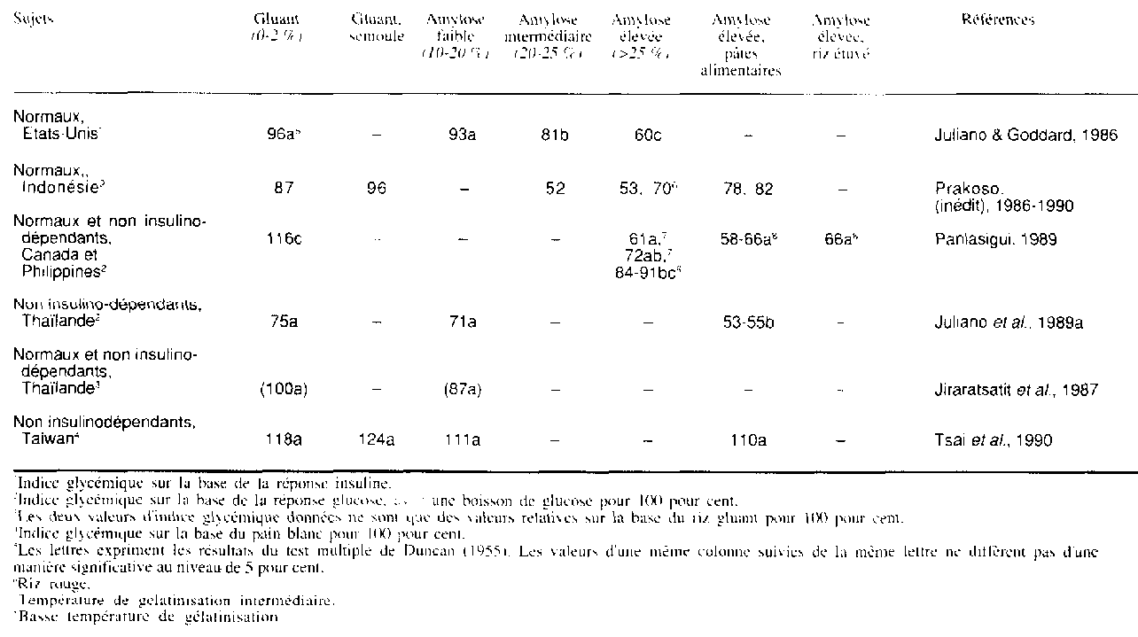 ²Eggum et Juliano, 1973, 1975: Murata, Kitagawa et Juliano,