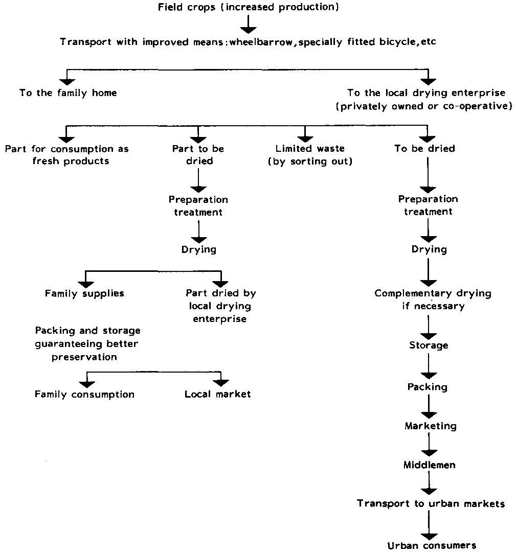 There are many advantages in carrying out drying operations in small size collection centres situated in rural areas and managed by small producers, farmer's associations or even privately owned enterprises capable of handling large quantities of products. The methodology of setting up and operating such centres or enterprises is described in the Report of the Second Preparatory Mission.