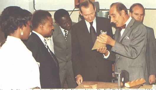 Figure 2 L'ancien Sécretaire General des Nations Unies, Dr. Kurt Waldheim, visitant l'ITA à Dakar, Senegal (1973). (Photo: Mr. H. Perten).