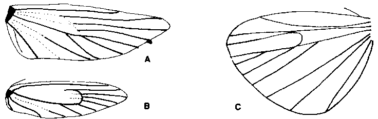 Figura 10. Venaciones de las atas posteriores de algunos Lepidópteros. - continua