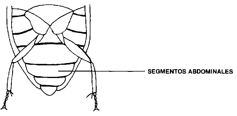 ABDOMEN. La estructura externa del abdomen de los adultos generalmente está constituida por once segmentos, de los cuales los posteriores se han modificado para formar los órganos sexuales externos (Figura 14).