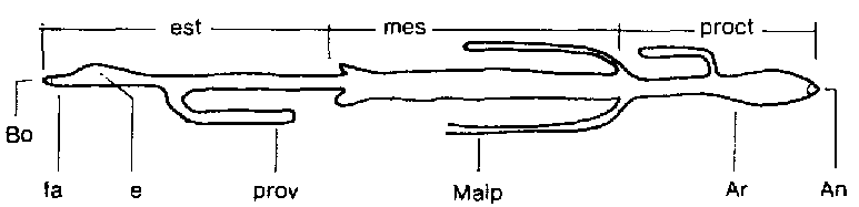 APARATO DIGESTIVO. El tubo digestivo va de un extremo al otro del cuerpo. Las glándulas y otros órganos internos dependen del tipo de alimentación de la especie (Figura 15).
