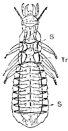 Figura 17. Sistema respiratorio. S: Espiráculos; Tr: Traqueas (vista dorsal).