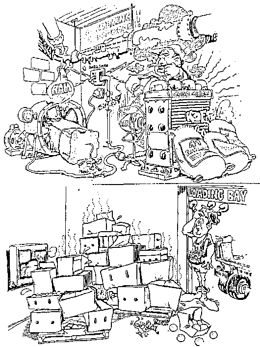 Figura 27. ¡¡¡EI almacenamiento de productos frescos depende esencialmente de la buena ADMINISTRACION!!! No pierda su inversión (Dibujo reproducido de Debney, H.G., et al.,1980)