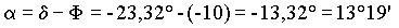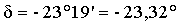 La cara inclinada del colector, de acuerdo con la convención adoptada para esa latitud, deberá estar vuelta al norte, si el colector está en el hemisferio sur, o al sur, si está en el hemisferio norte. Entonces, si el ángulo de inclinación calculado con las ecuaciones 3 y 4 fuese negativo, quiere decir que habrá que volver la cara del colector en la dirección opuesta a la que se recomienda más arriba. Por ejemplo, para una latitud 10° S, en el mes de diciembre, se tiene: