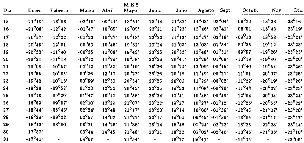 Cuadro 1 Angulos de declinación (y) diaria del sol